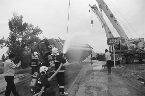 8月16日16时42分,金塔消防中队接到119指挥中心派警,位于酒航路27公里处,有一槽罐车侧翻发生泄漏。当日18时零5分,消防官兵到达事故现场。经了解是一辆牌照为“豫CD6916”的槽罐运输车在行驶途中因路面湿滑发生侧翻,导致罐口和泄压口发生泄漏,罐中所装液体为混三(混合四甲苯)。20时零5分,在槽罐车被吊正后,现场处置人员对槽罐车的罐体进行了细致的检查,发现除顶部有破裂外,罐体其余地方再无破裂。槽罐车侧翻泄漏事故被成功处置。(记者 陶怡杉 通讯员 刘龙 高明)