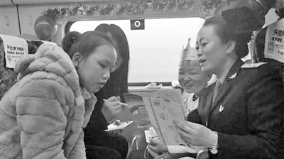 贾廉洁为车生一家人介绍青藏铁路通车10周年纪念封。
