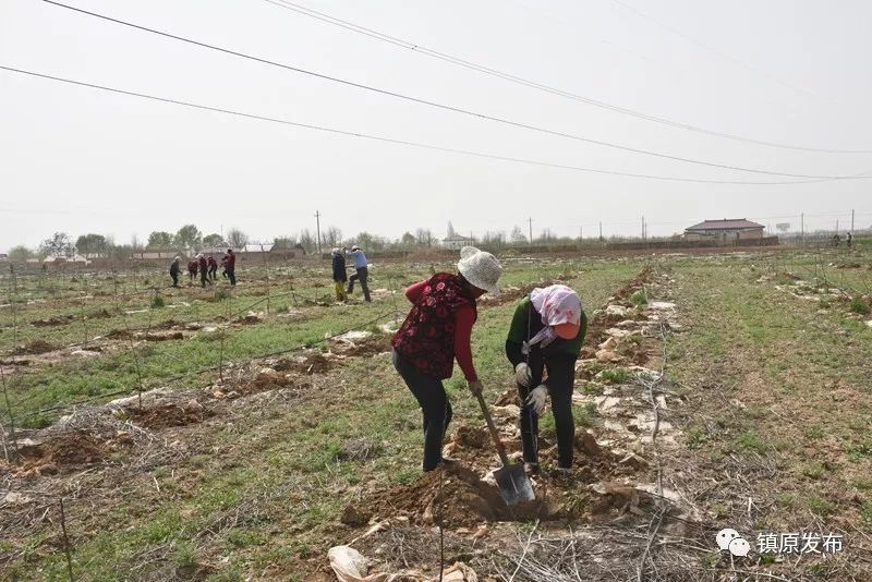 “2016年,我们试验种植矮化园300亩,去年已零星挂果,从果品质量来看要优于乔化果园,”村支书张晖正在组织甘旭果品专业合作社果农进行补植树苗,见到笔者,他连忙停下手中的活计介绍道,“今年我们采取群众自愿参与,以土地入股的形式加入合作社,计划栽植1200亩,由合作社统一调苗、统一栽植、统一管理,目前来看,果树成活率在95%以上,效果不错!”