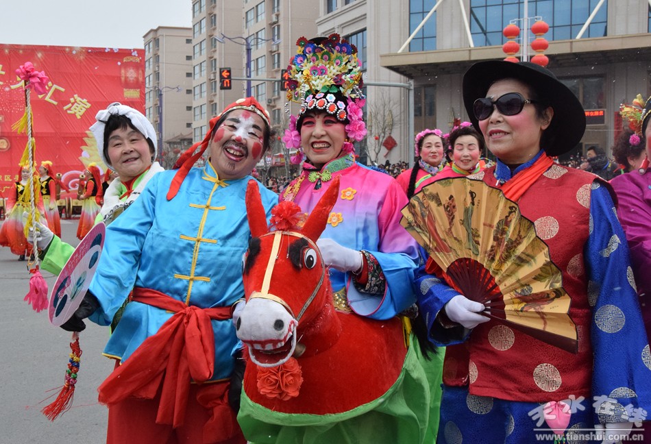 (麦积区2019年社火汇演) 当日上午,来自全区各镇、街道办的13支社火表演代表队,有社火高台、彩车、舞狮、跑旱船、纽秧歌等131个各具特色的民间民俗展演节目。精彩表演在欢快优美的舞蹈中拉开序幕,场地表演的演员们个个精神抖擞,和着愉悦动感的节奏、踩着摇曳多姿的舞步,时而逶迤前行,时而原地踏舞,真是舞出春光醉,彩扇扇得山河美;装饰华美的彩车色彩缤纷、异彩纷呈,各具特色传统高抬社火,气势恢宏、精美绝伦,博得了广大观众阵阵的鼓掌声和赞誉声;在舞狮子跑旱船节目中,神采奕奕、吉祥威武的狮子随着狮子球翻腾跳跃,矫健的身姿、快捷的步伐舞出了动感美、刚劲美,把麦积人民庆新春、过大年的喜庆再一次推向高潮,也集中展示了麦积人民对美好生活的热爱与向往,更展现了麦积人民团结奋发、积极向上的精神面貌。