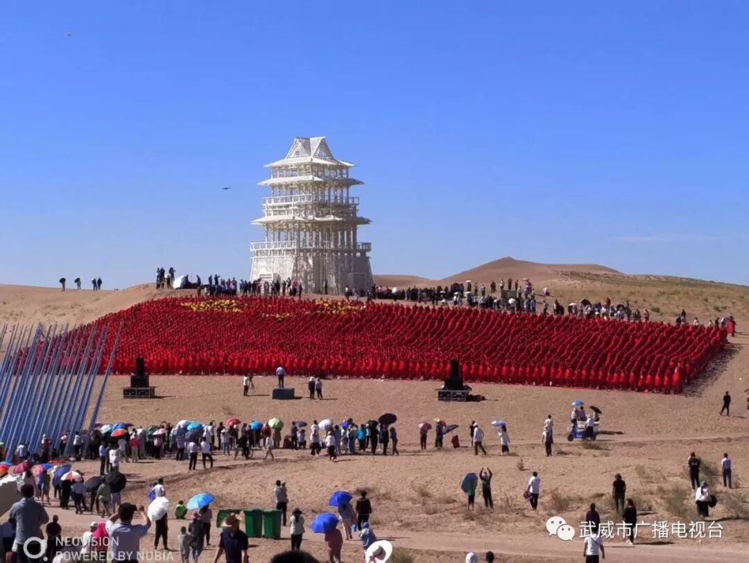 开幕式上,民勤县为入展艺术家颁发了收藏证书,各位艺术家、参会嘉宾参加了留手印、参观摄影展及拍卖等活动,民勤县近万名志愿者齐唱了《我和我的祖国》,并进行了气势恢宏的行为艺术表演。