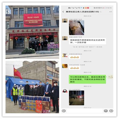 共驻共建、共克时艰!悉心守护群众安全门的,还有我们辖区的爱心单位。甘肃电投地产武威陇能开发公司党支部书记、总经理陈兴明给检测点送来了急需的帐篷,还带着牛奶、方便面等物品慰问执勤的同志们。他说:“我感觉这次咱们武威抗击疫情阻击战中,群防群治的效果非常好。平时干部们都在单位上忙,虽然也是为群众服务,但跟群众感觉还是有距离。这半个多月的执勤,党员干部栉风沐雨、负重逆行的铮铮风骨,群众都看在眼里、记在心里了。这些天,我们小区的业主群对这些‘红色’门卫点赞率很高啊,还有专门给检测点送煎饼的。这次防疫,防住的是疫,守住的是初心,赢得的可是民心啊!”
