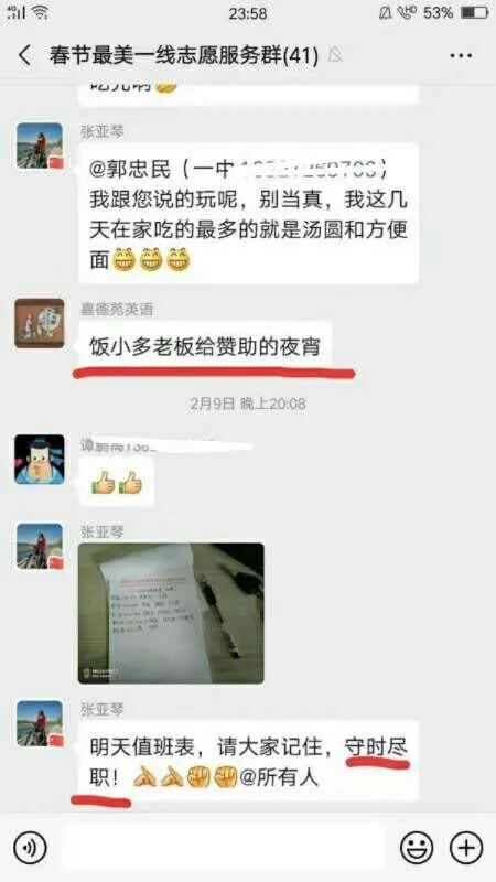 自开展疫情执勤防守工作以来,我们彼此间相互鼓励、相互关爱,相互温暖,一句句“加油,你最棒”、“辛苦了,亲爱的,保护好自己”、“爱心餐留给你吃,我回家吃”、“天冷了,注意添加衣服”、“战胜疫情,我们共同努力”类似这样语言还有很多很多,面对“无情疫情”更显“志愿真情”。志愿者彼此间由陌生到熟知,遇到困难时,相互帮助,遇到被居民不理解受委屈时又相互安慰,尽管大家的工作几乎每天都是重复的,但又是“神圣”而“严肃”的,一测二问三核查、认真登记,微信扫码、通行证检查、车辆楼道消毒等,面对每天繁琐而众多的工作,他们从不言苦、不言累,为的是给百姓交上一副满意的“防守答卷”。大家热情耐心、专业仔细排查每一位出入的居民和车辆。