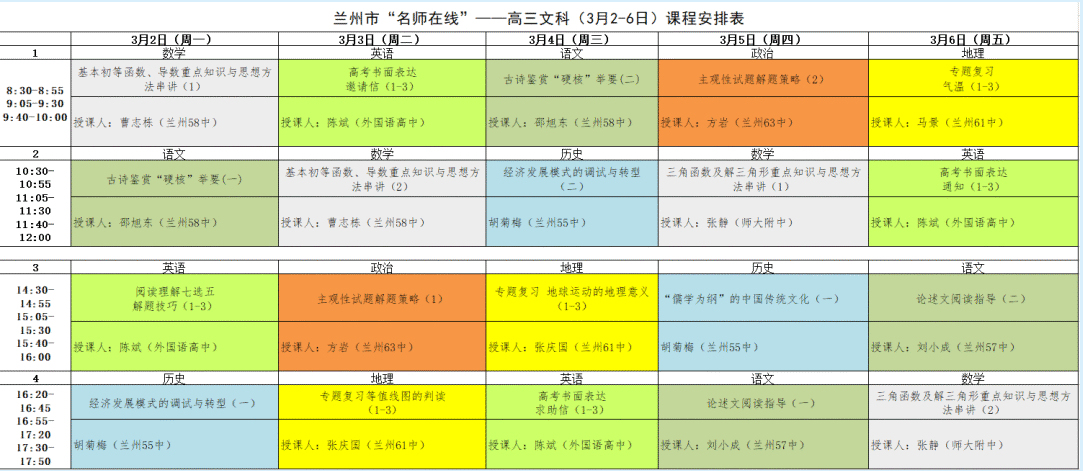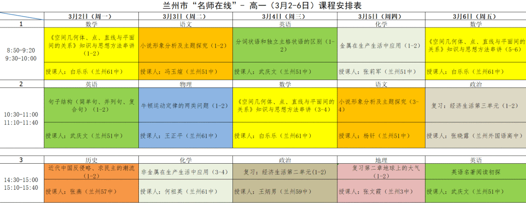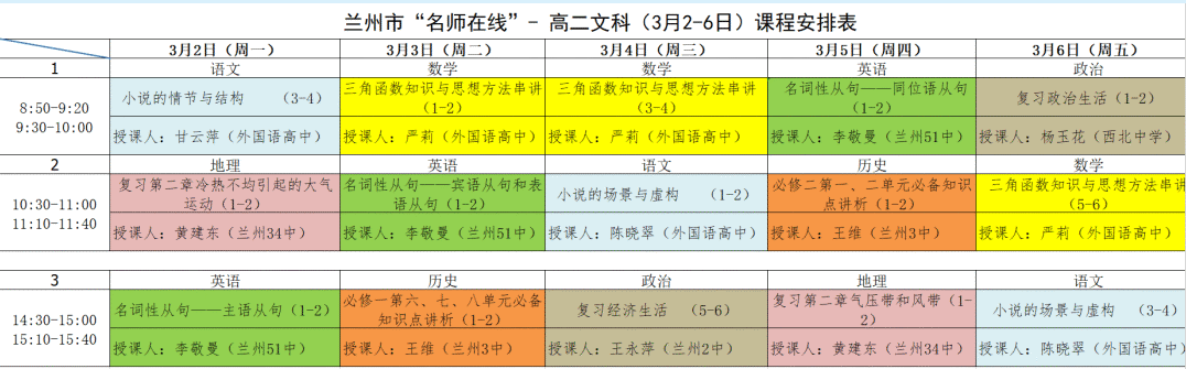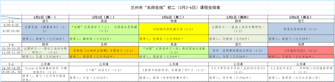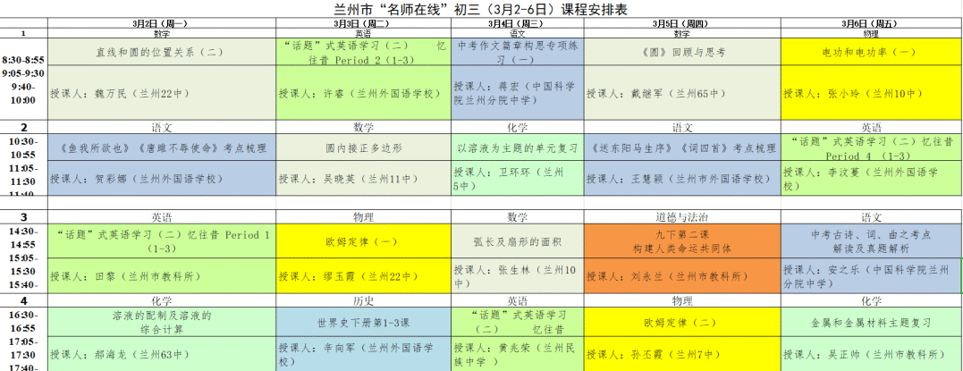 原标题:延迟开学期间,兰州市中小学生居家线上学习第二周(3月2日-6日)课程资源安排2月28日出炉。