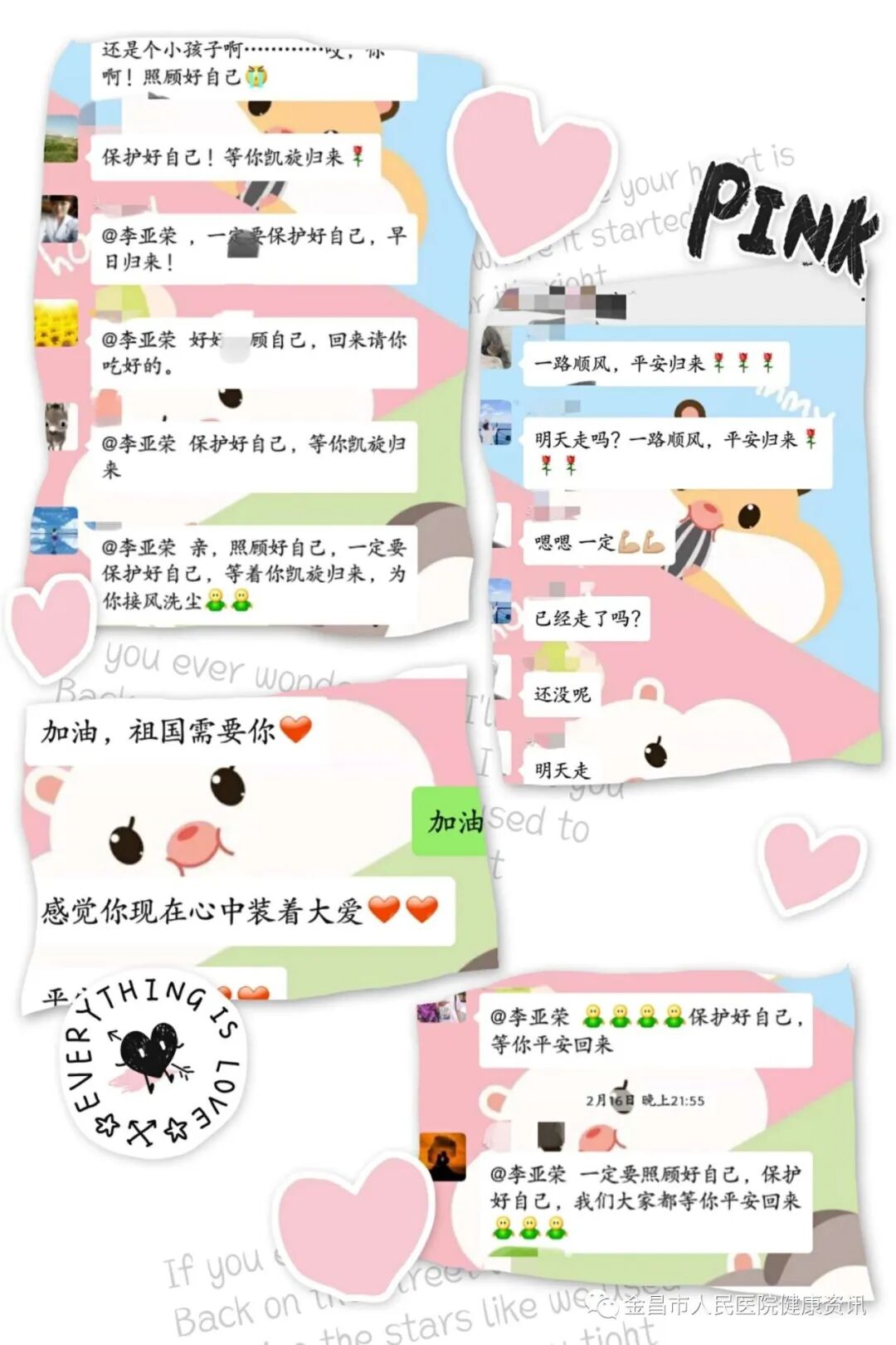 2月16日,已经在我院留观病房工作20天,得知医院要抽调医护人员支援湖北的消息。我很庆幸,工作将近四年,我已经不是那个面对灾难,只能手捧蜡烛默默祈祷而无能为力的小姑娘了。认真考虑了自己的情况:我单身,父母家人身体健康,呼吸重症进修经历,组建发热门诊及留观病房经历,而且作为一名党员,这更是我义不容辞的责任。于是我第一个报了名,爸妈及家人也给了我最大的支持,叮嘱我注意安全,保护好自己。兄弟姐妹们知道我即将奔赴武汉,纷纷叮嘱我要做好防护,主任护士长亲自为我们送行。以前工作的儿科的姐妹们把科里为数不多的手套、口罩、手消等防护物资塞给了我,满满的感动。我的“塑料姐妹花”们跟我说:“加油,祖国需要你。等你凯旋的时候,我们拿着小红旗为你接风”。