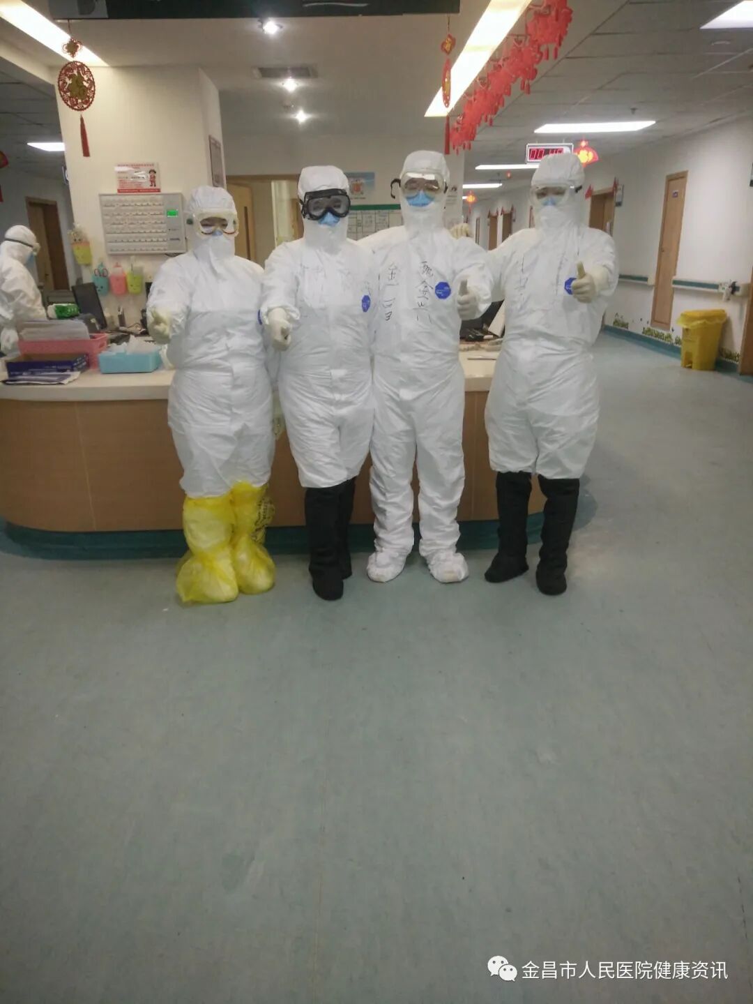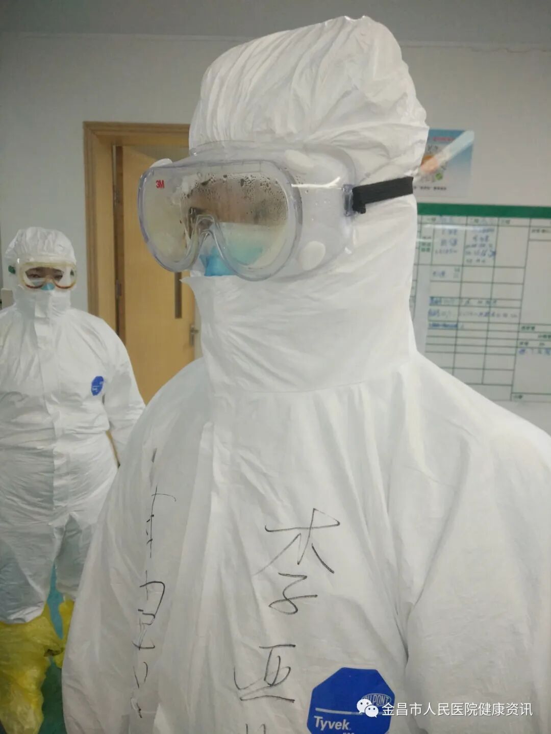 待一切工作准备就绪,我所在的第四批甘肃医疗队接管了武汉市中心医院后湖院区其中一个完整的病区,自此,“发热十八区”就成为了我们战斗的地方。仍然记得第一天,穿着厚厚的防护服,带着护目镜和外科手套,刚进入污染区,里面的洗手衣就已经湿透。因为不能顺畅呼吸,2个小时后我就有点眼冒金星。经过短暂休整,调节呼吸,我们又开始了新病人的收治工作。为避免防护物资的浪费,病房实行6小时排班制,下班后还要经过严格的消毒及脱防护服流程。从穿到脱近10个小时。由于驻地离医院较远,很多人在车上就睡着了,更有好多人由于10小时不能吃喝,低血糖也是偶有发生。还有很多女同志,要预防性的穿成人纸尿裤。突然很感谢父母,给了我一个健康强壮的身体。尽管耳朵、鼻子都受伤挂彩了,但工作也变得更加得心应手了。