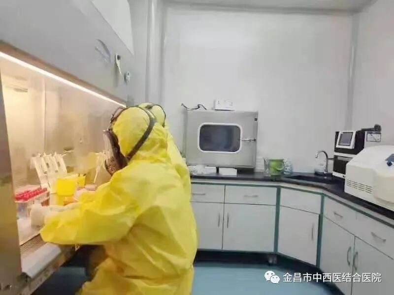 1月29日,金昌市中西医结合医院收到金昌市疾控中心核酸检测技术支援请求。毕业于兰州交通大学微生物检验专业硕士研究生的杨秀丽,是八冶医院检验科出色的检验师。杨秀丽深知疫情形势复杂,核酸检测工作责任重大,关系着金昌百姓的生命安全。面临艰难的抉择,她毅然成为了离“新冠”病毒最近的核酸检测员。在极度缺氧的负压PCR实验室,正常人待一两个小时就会感觉头晕、胸闷。检验员要穿戴密不透气的防护服、口罩、防毒面具、双层手套、护目镜、脚套等防护装备,才能进行各项实验操作。由于防护物资紧缺,为了节约防护用品,检验员一进去至少都要待上8个小时才能出来。不吃不喝不上洗手间,穿上纸尿裤投入工作,凌晨两三点钟走出实验室是常有的事。杨秀丽每天要接受大约30多个标本的检验任务,每每走出实验室,她整个人都被汗水湿透,密不透风的防护服,在她的脸上、手上留下了一道道深深浅浅的勒痕,但杨秀丽总是出色的完成着各项检验任务。