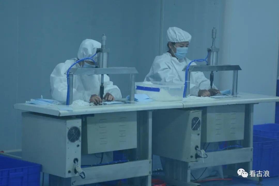 3月17日上午,在甘肃绿润生态科技有限公司无菌无尘口罩生产车间内,送料、切割、缝制、成型、压带、包装等一系列生产工序有序进行,成品口罩如雪片般“飞”入收纳箱。当日,古浪县首条一次性民用口罩生产线在该公司完成设备调试并开始生产。