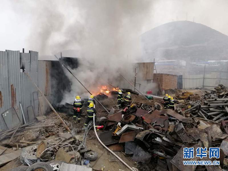 3月25日,兰州市七里河区彭家坪镇牟家坪村一物资回收公司起火,消防员正在灭火。(兰州市消防救援支队供图)