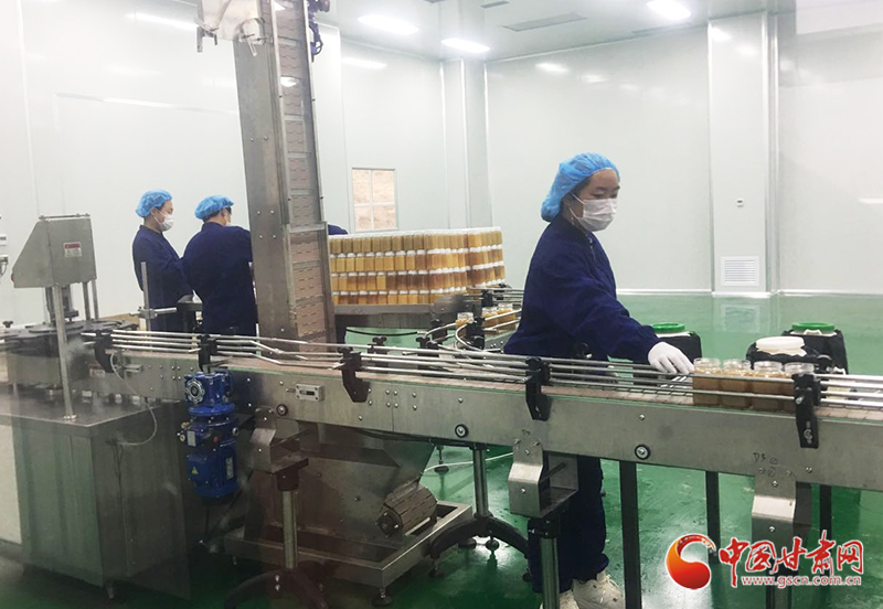 4月1日,记者跟随“甘肃省决战决胜脱贫攻坚主题全媒体集中采访活动”采访团,来到位于宕昌县南河镇任藏村的宕昌县兴昌蜂业科技有限责任公司时,几名工人正在一条自动化蜂蜜灌装生产线上作业,厂房内四处飘散的淡淡蜜香……