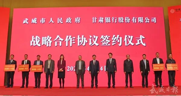 中国甘肃网4月15日讯 据武威日报报道(全媒体记者张志华)4月14日下午,武威市人民政府与甘肃银行股份有限公司签订战略合作和相关合作意向协议。这标志着地企合作交流将进一步深化,必将推进政银企互利共赢。