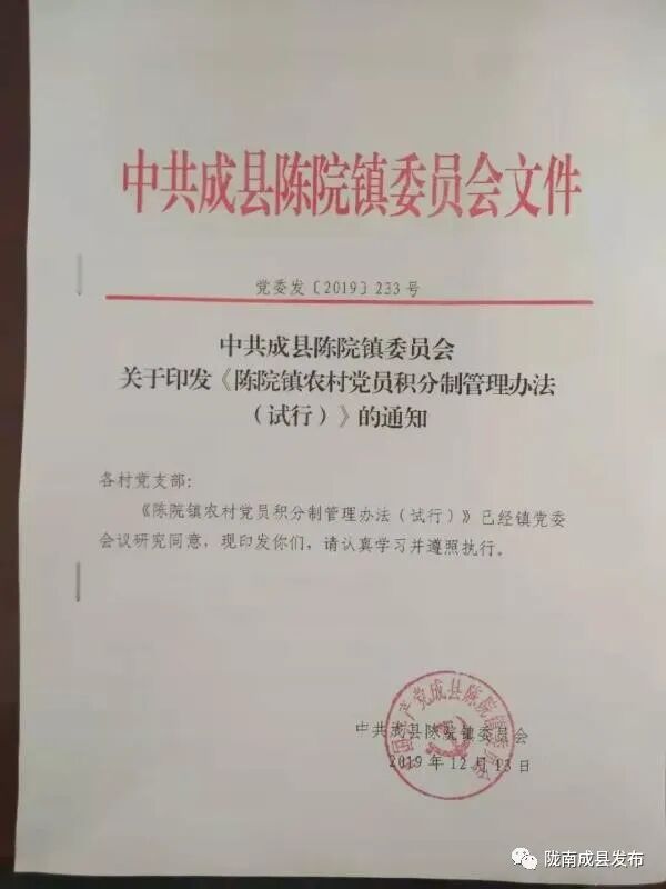 原标题:成县陈院镇:积分制首创基层党建工作新格局