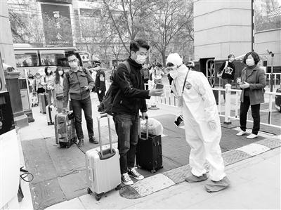 该校今春开学实行错时段、分地区、按年级分批次错峰报到,4月20日-21日是五里铺校区学生返校时间,和平校区学生将于4月22日—25日错峰返校。返校报到当天,该校分别在中川机场、兰州火车站、兰州西站、兰州长途汽车站、兰州汽车东站、兰州汽车南站设立了专门接站点,返校学生返兰后前往接站点并进行体温检测,体温正常者方可统一乘坐校车返回五里铺校区,体温异常者即被安排暂时隔离、送检。对于乘坐私家车直接到校的学生,车辆在学校门口即停即走,车辆及陪同人员不许入校。返校学生从出站到宿舍必经的每一个环节,都按照学校多次演练过的程序无缝衔接。