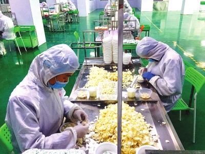 西果园镇西果园村贫困户孙亚洲来扶贫车间工作8天了,她是通过乡亲的介绍来公司应聘并被录用的。“车间的工作量是按件数计算的,装一碗百合赚5毛钱。”孙亚洲说,“我刚来不太熟悉,现在赚得比较少,相信经过努力可以更熟练一些,工资也可以拿得更高。”