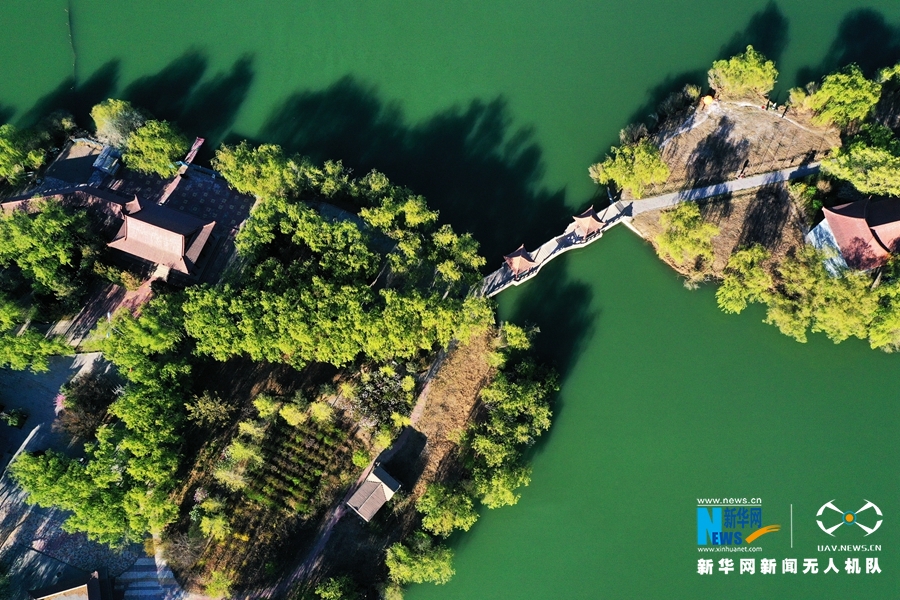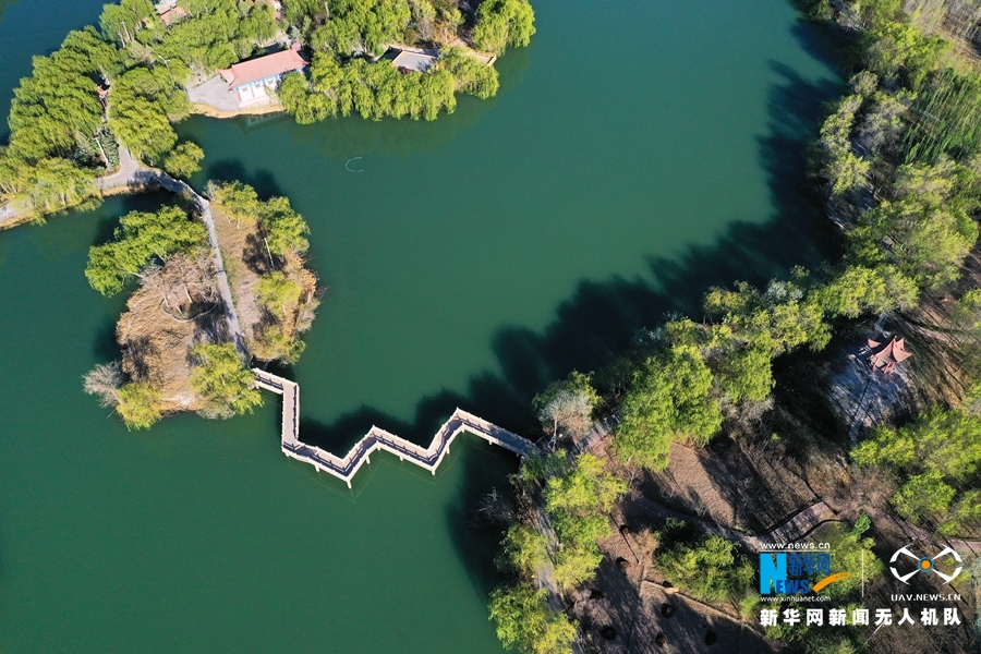 高台县月牙湖公园位于县城西郊,是以黑河为依托,形成的一个风景区,园内风景秀丽,小桥流水如画如织,林荫小道曲径通幽。新华网发(郑耀德 摄)