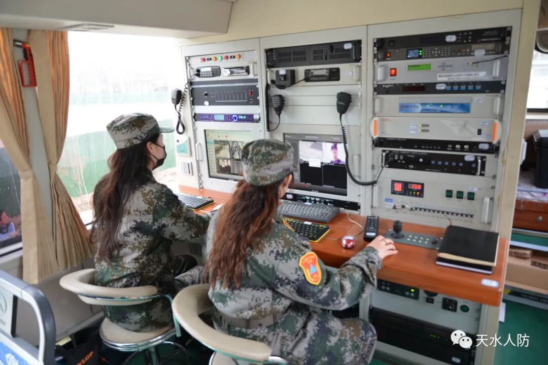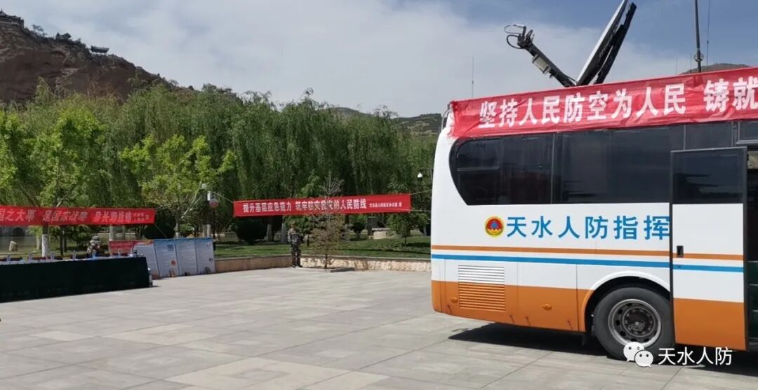 在甘谷县大像山广场演练和宣传活动现场,开展了机动指挥所展开与撤收、指挥通信及信息处理系统的开启,与市人防地面应急指挥中心互联互通等训练内容,实时将设备采集的音视频信号传送至市人防地面应急指挥中心,实现上传下达、通信传输,指令传达准确。随后,在大像山广场通过摆放展板、广播宣传、发放《防空防灾知识手册》、悬挂横幅、现场示范、解答咨询等形式,就国防人防安全、人口疏散、防灾减灾、自救互救等内容向市民进行了宣传和讲解。演练和宣传活动结束后,组织全体参训人员参观了甘谷县人防地面应急指挥中心和人防宣教体验馆,王天录开展了调查研究,与甘谷县人防办工作人员就人防领域突出问题集中治理、学习贯彻省人防办贠振荣主任监查调研天水人防工作时的讲话精神、人防信息化建设、宣传教育等方面的工作进行了交流。