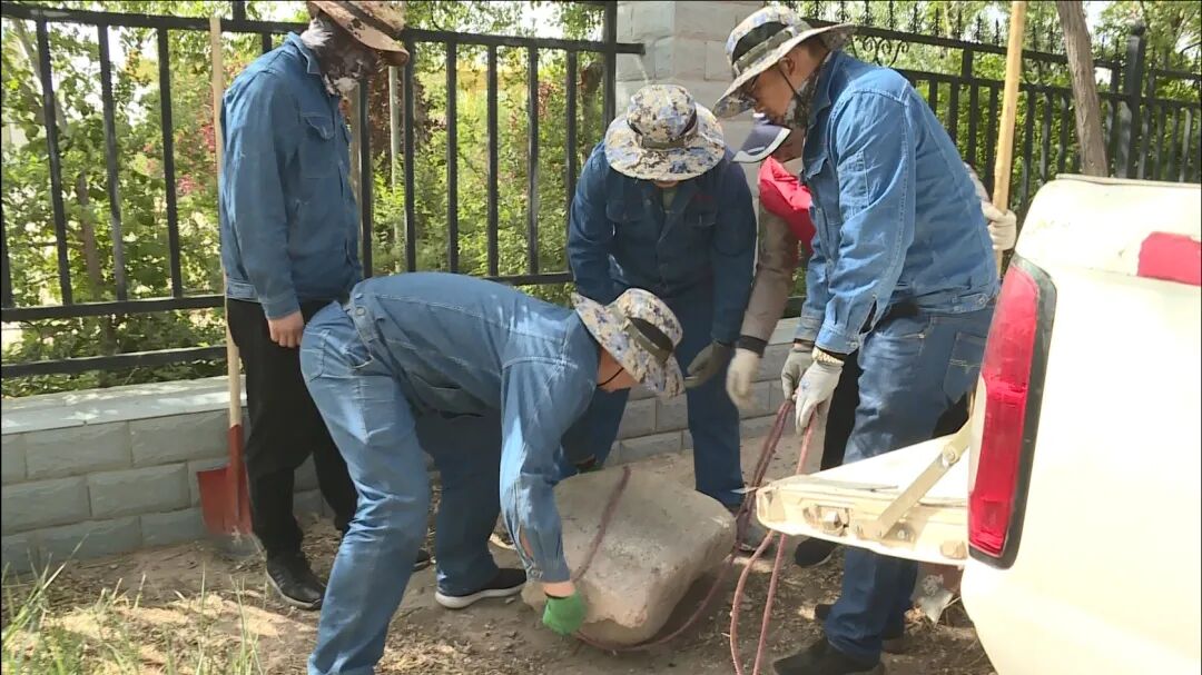 这个片区是我们河西堡镇党政办公室进行环境卫生整治的责任片区,今天我们在这个片区内进行环境卫生整治,对地面杂草和砖石进行清除,对地面进行平整,全力配合创建我们全国文明城市。