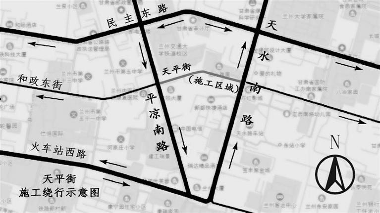 因城关区天平街路面维修改造,定于2020年6月8日至10月30日,对该路段自西向东分段封闭施工,经过此路段车辆一律从平凉路、火车站西路、民主东路、天水路绕行。