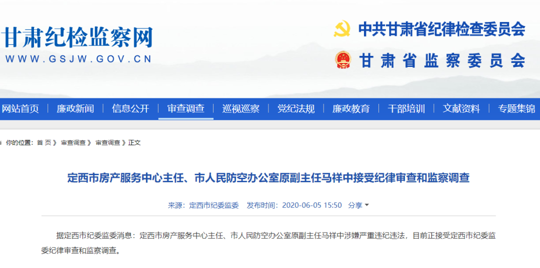 原标题:定西市房产服务中心主任、市人民防空办公室原副主任马祥中接受纪律审查和监察调查
