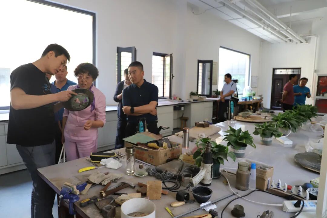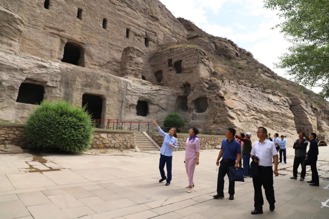 6月9日上午,考察组一行先后参观学习了云冈石窟、石窟博物馆、美术馆、文创产品基地、文物保护修复研究所、石窟数字化以及景区智慧中心,并与云冈石窟研究院院长、云冈旅游区管委会主任张焯、副院长、云冈旅游区管委会副主任何建国、科研办主任赵昆雨、文物保护修复研究室主任闫宏彬、云冈博物馆馆长刘建军、“西天梵音”乐舞表演艺术总监马丽霞等其他负责人进行了深入地座谈交流。