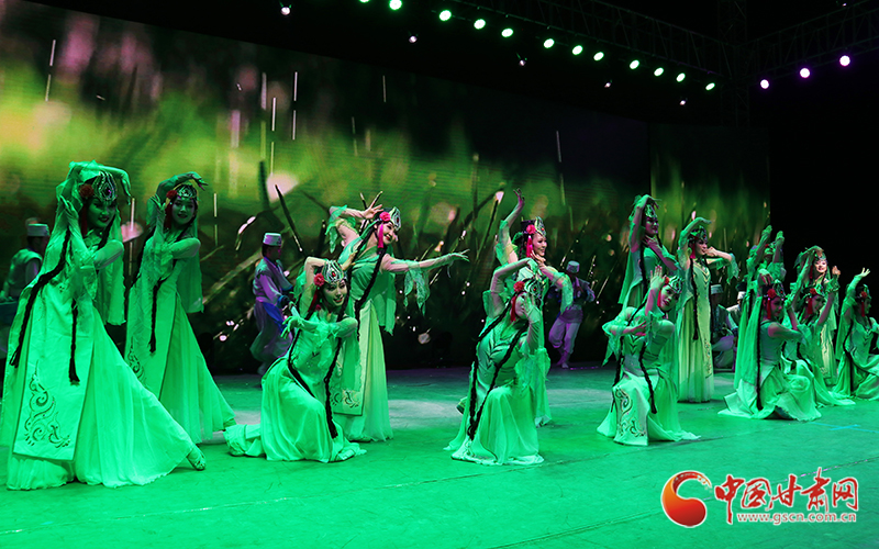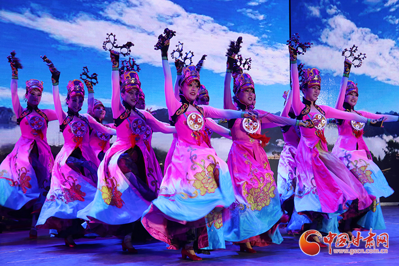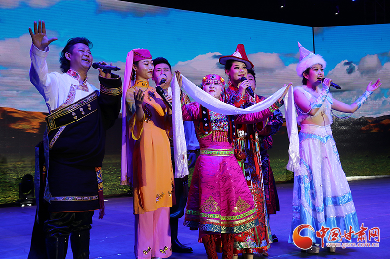 当晚8时30分,演出在裕固族舞蹈《盛装舞》中拉开序幕:壮美的祁连山映入眼帘,裕固族群众的生活场景徐徐展开……能歌善舞的裕固族演员用他们的舞蹈,表达了对新时代的礼赞。