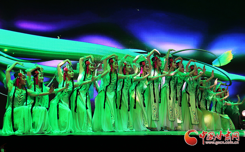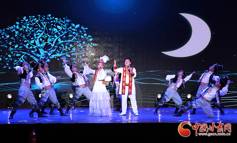 当晚8时,演出在裕固族舞蹈《盛装舞》中拉开序幕:壮美的祁连山映入眼帘,裕固族群众的生活场景徐徐展开……能歌善舞的裕固族演员用他们的舞蹈,表达了对新时代的礼赞。