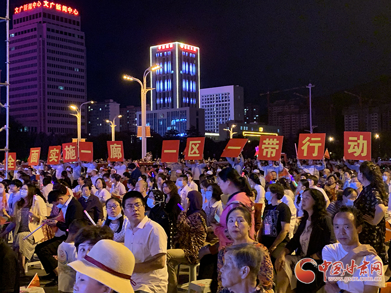 当晚,当地组织了民族代表方队、医护工作方队、环卫工人方队、社区方队、公安武警方队、机关干部方队及各界群众共计1200余人现场观看演出。此外,平凉广播电视台对当晚的演出进行了全程现场直播。