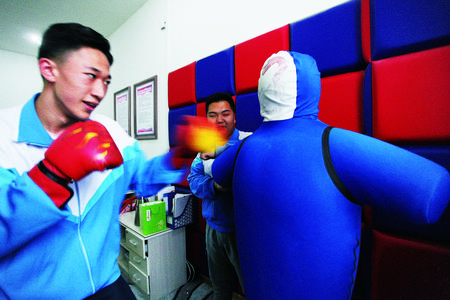 学校设置了“压力宣泄场”,让同学们放松心情。