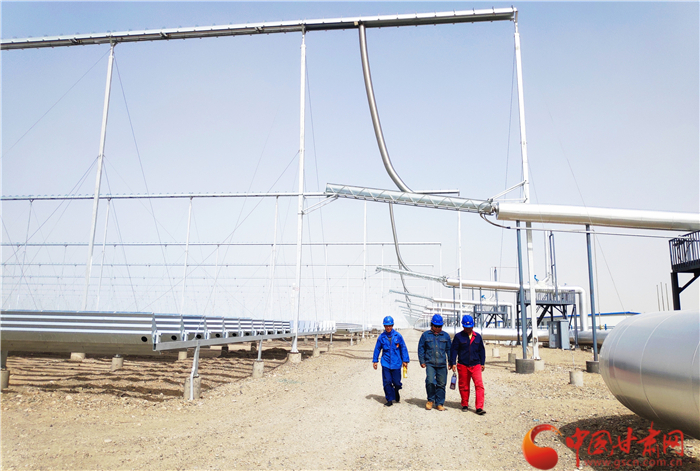 工人检修50兆瓦线性菲涅尔式熔盐光热发电示范项目归来