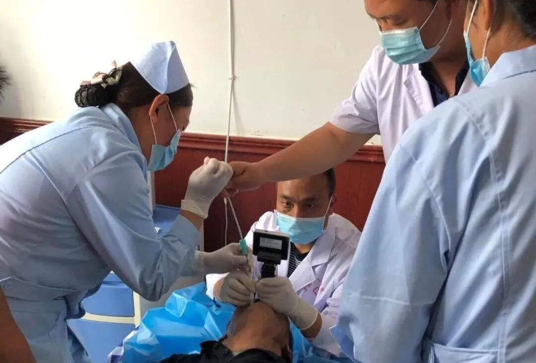 李向前主治医师在迭部县医院门诊为一位做胃镜检查的患者实施麻醉,无痛技术的应用进一步拓展县医院对高龄和复杂合并症患者开展胃肠镜诊疗的能力。