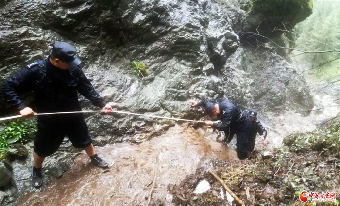 他们不仅自己要淌着没过膝盖的河水,忍受刺骨的冰冷,还要给由于行路难而时常“抛锚”的警车助力,从脸上留下大把大把和着雨水的汗珠。