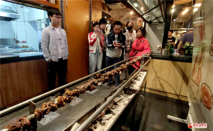 非物质文化遗产“小党嘉峪关烤肉”从魏晋墓群砖壁画中“复活”了烤大串,吸引“丝路人·丝路情”主题采访团参观拍照