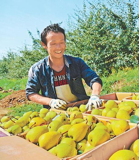临夏县坡头乡冯巍村群众正在装运自家的啤特果。新甘肃·甘肃日报通讯员 张志强