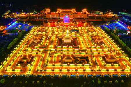 屋兰古镇景区位于甘州区碱滩镇古城村,距甘州城区 25 公里。九曲黄河灯阵占地150亩,阵内游步道全长2.4公里,是我省省级非物质文化遗产,2019年1月被上海大世界基尼斯记录评为“中国规模最大的灯阵”。