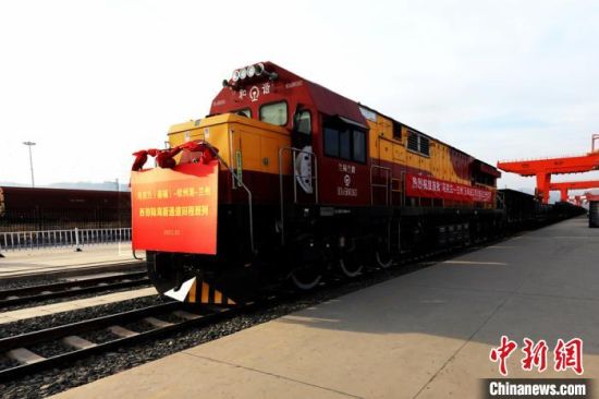 2020年初,西部陆海新通道班列兰州—重庆—钦州港“周周班”试运行。(资料图)甘肃(兰州)国际陆港供图
