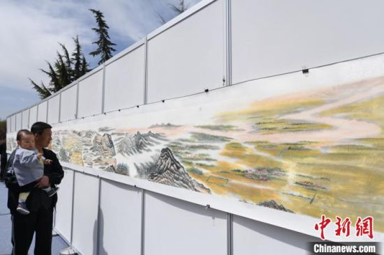 图为200米国画长卷“兰州版《清明上河图》”亮相。(资料图) 杨艳敏 摄