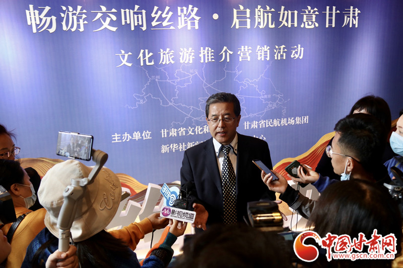中国甘肃网3月24日讯(本网记者 李红军)“杭州—恩施—兰州航线执飞在即,这将让江南水乡与北国风光实现最短时空的牵手,使杭州定胜糕与兰州牛肉面成为两省游客最为钟爱的相约。”3月24日,甘肃省委宣传部副部长、省文化和旅游厅党组书记、厅长陈卫中在甘肃文旅浙江专场推介会上说,希望双方文旅企业抢抓航班开通契机,面对面洽谈、点对点布局,借助“政府的手”和“市场的手”,为“诗和远方”搭建“空中丝绸之路”,帮助老百姓“富了口袋富脑袋”,助推“陆丝海丝”大联动、服务国内国际“双循环”。
