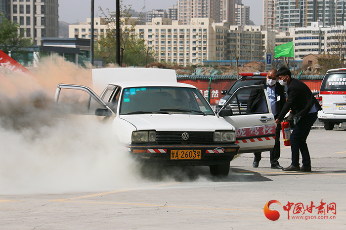 活动设置现场应急救援演练、现场灭油池火两部分,在兰州市、安宁区两级应急管理部门和交安委专业人员指导下展开。