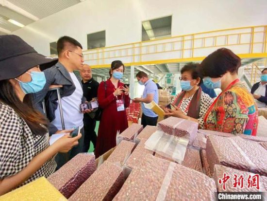 6月7日上午,华媒代表在甘肃环县麦上客杂粮公司采访。 高展 摄
