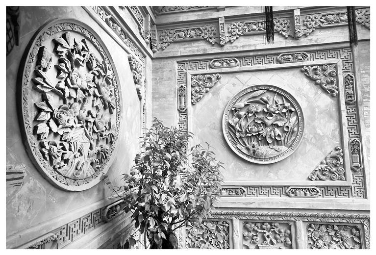 漫步于八坊十三巷街头,仿古建筑的门楼、影壁、墀头、墙垣、脊饰,以及普通的民间院落里,精美绝伦的砖雕随处可见,匠心精神令人惊叹。山川、清泉、松鹤、翠柏、百鸟、牡丹、梅兰竹菊……一幅幅栩栩如生的砖雕,凝结着临夏人民的智慧和悠久的历史文化。