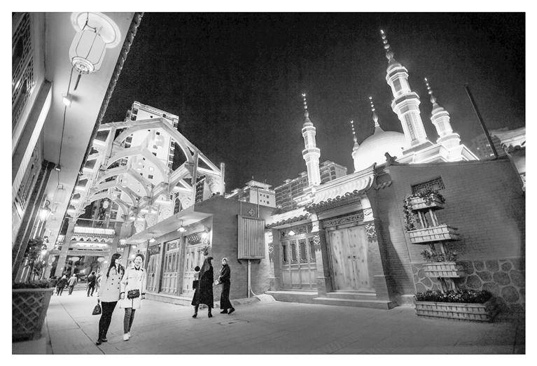 之后前往临夏市,夜游古河州老城——八坊十三巷。一条条干净整洁的青石路、饱含历史文化韵味的街巷,一幅幅展现八坊人民生产生活的河州砖雕,一扇扇古色古香的木质门窗,再加以八坊民俗馆、八坊手工艺馆、八坊人物故事馆等展馆,临夏市的文化肌理深刻而清晰。