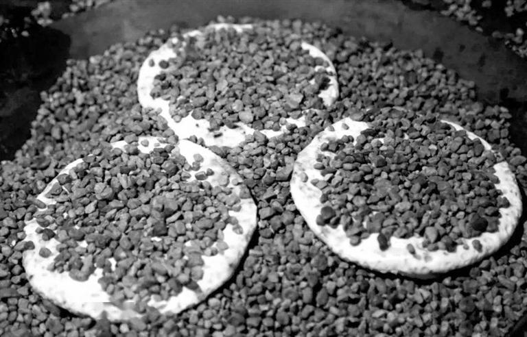 和西和的麻烧饼相比,临洮石子馍所用的石头更粗狂一点,西和的细小一些,怪不得麻烧饼又称“埋沙馍馍”。