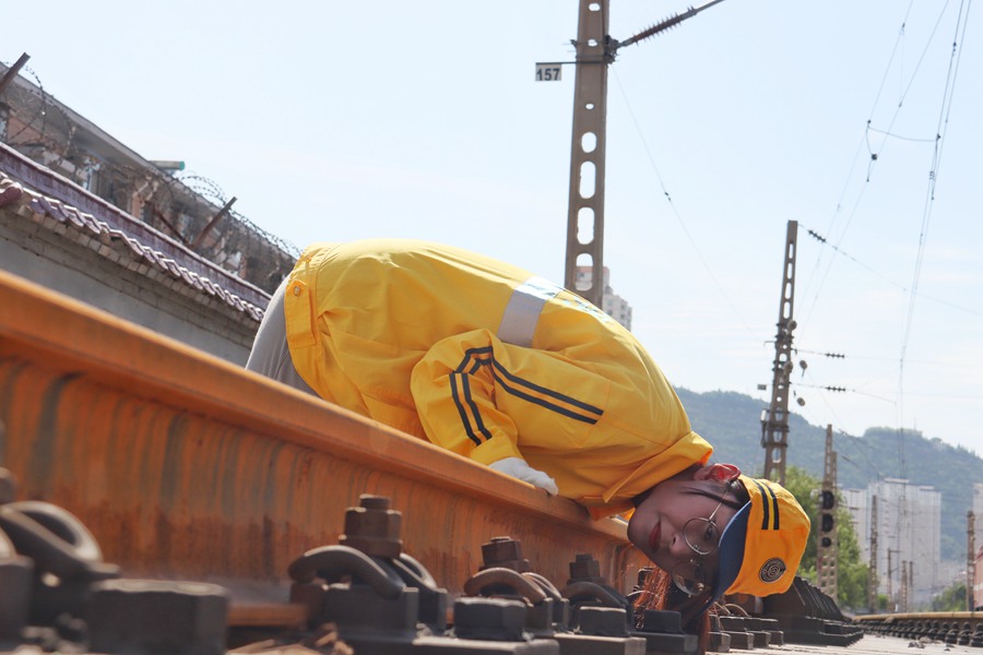 烈日下的坚守:趴在近50℃的钢轨上给铁路做“体检”
