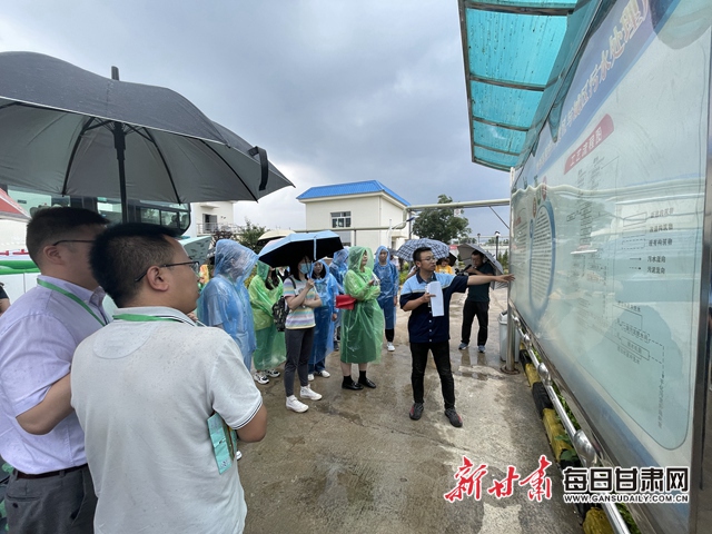 陇西污水处理厂工作人员向采访团记者介绍情况