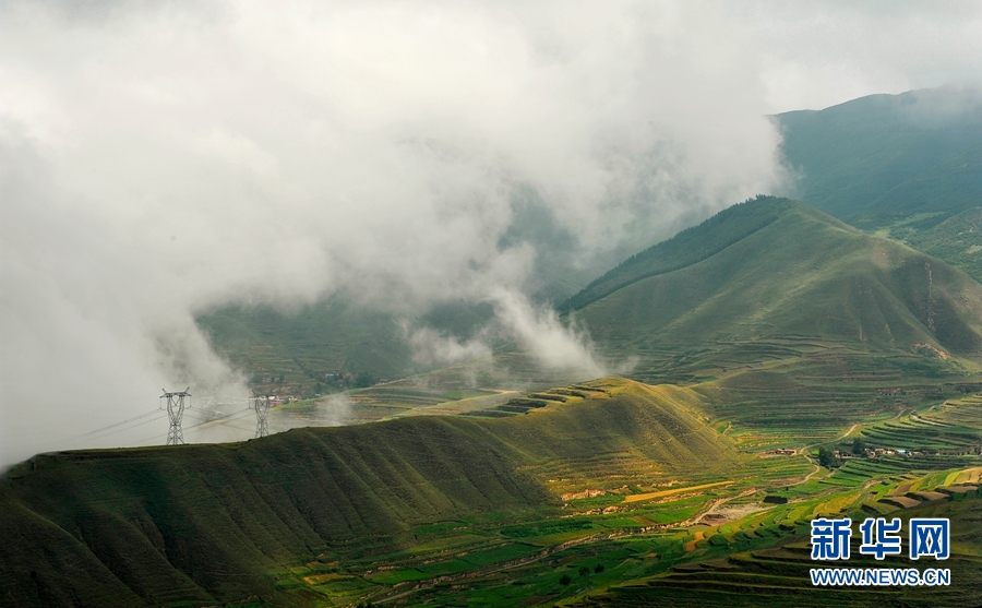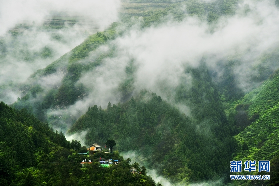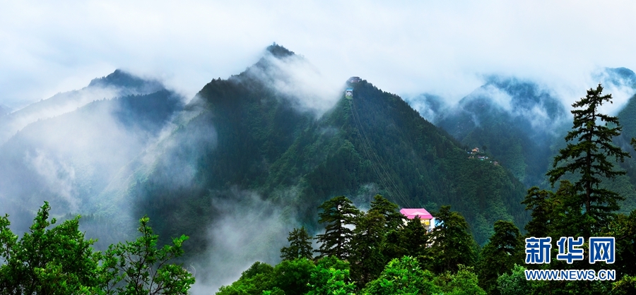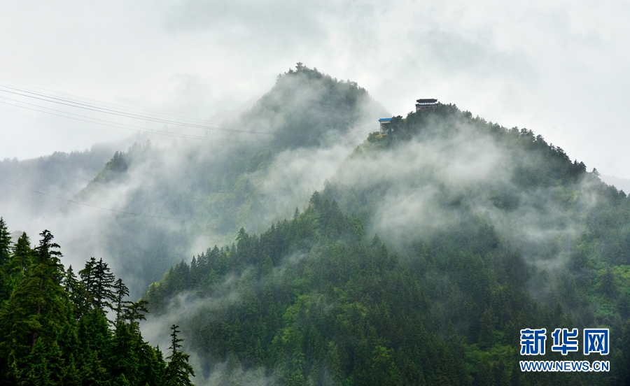 近日,一场夏日雨后,位于甘肃省兰州市榆中县的兴隆山景区烟雨弥漫、云蒸雾绕,绘就了一幅烟雨画卷。俯瞰兴隆山,青山绿树笼罩在云海中,让人宛如画中行。一阵风吹来,原本隐藏在云中的古建筑景点,缓缓露出头来,仿佛屹立在云端之上,让游人感受到江南烟雨般的美景。新华网发 (陈旭东 摄)
