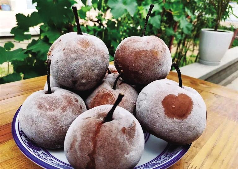 在严冬季节,深受兰州人喜爱的一个水果必定是“皋兰软儿梨”,每年深秋采摘后,它的果肉较硬而味酸,入口有颗粒渣的感觉,然而经西北寒冽的冬天糖化、变黑后才是皋兰软儿梨最佳的吃法,也是兰州人在严冬的一道特色美食。