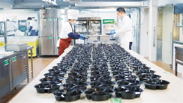 早餐装车派送的时间里,准备午餐时间尚早,王玉强可以暂时解下围裙松一口气。他告诉记者,从疫情发生以来,他几乎每天都是凌晨5点到单位,忙完回家就是晚上八九点,“虽然累,但是想着抗疫一线的人能因为我们的努力,而吃上一口热乎的饭菜,对我来说,再累心里也是热的。”