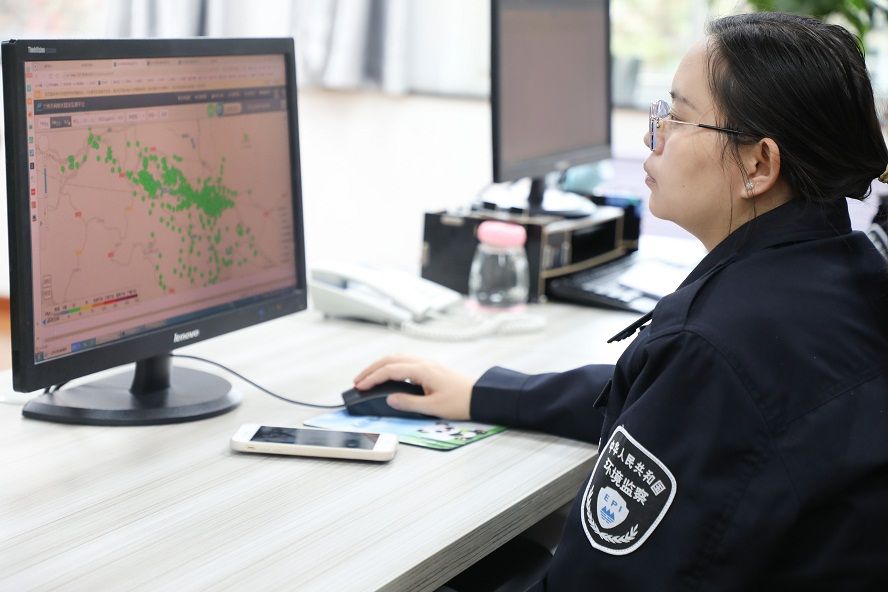 工作人员在兰州市环境监控大厅进行监测工作 马希平 摄