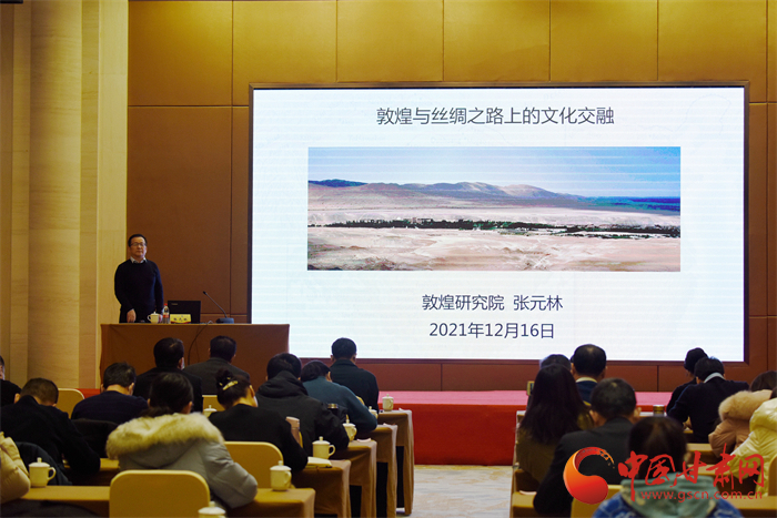 中国甘肃网12月17日讯 (本网记者 张兰琴)12月16日,“一会一节”业务知识培训班第七场专题讲座在敦煌举办。讲座由敦煌研究院副院长、兰州大学萃英讲席教授、中国敦煌吐鲁番学会副会长、史学博士、研究员张元林主讲。