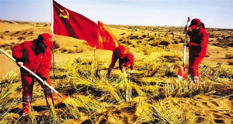 3月3日,武威公路事业发展中心古浪公路段党支部组织全体党员及团员青年前往古浪县七道沟,开展主题党日活动,挥锹压沙。